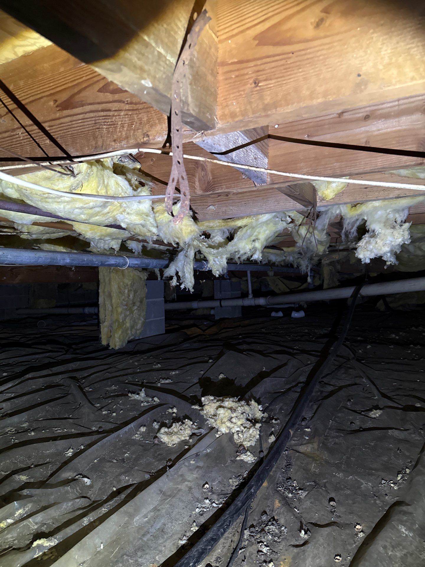 Healthy Way proposed full abatement of fiberglass insulation and vapor barrier, complete mold remediation using a four step mold remediation process along with HEPA vacuuming and fogging of the entire crawlspace. The project also includes encapsulation with new vapor barrier and installation of spray foam insulation from the floor to rim joists, including application on all four piers for comprehensive protection and long-term efficiency.